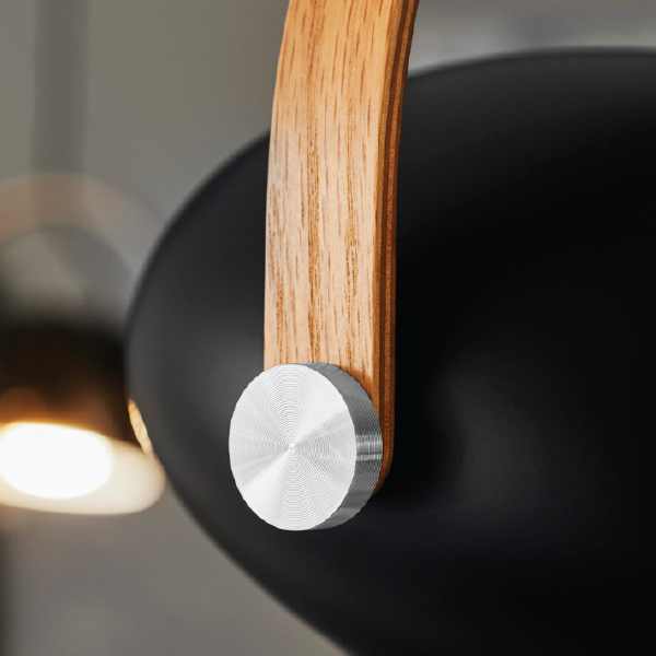 Graças às suas formas arredondadas e à combinação de metal e madeira, este candeeiro de pé tornou-se imediatamente num clássico.