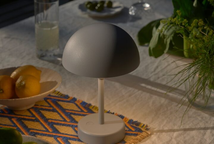 Com referências ao design escandinavo minimalista e atemporal, Ellen integra-se perfeitamente à maioria dos ambientes. Esta versão “mini” portátil pode ser usada tanto em ambientes internos quanto externos e possui três níveis de intensidade luminosa para criar a atmosfera perfeita. A bateria pode ser facilmente carregada colocando a luminária na base de carregamento inclusa.