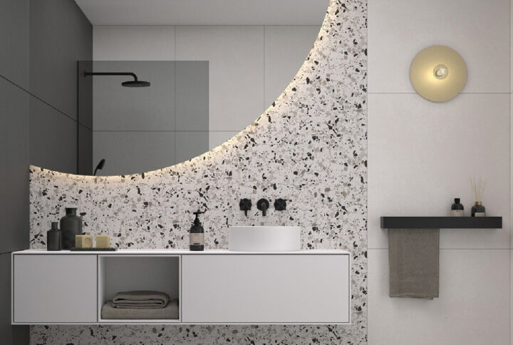Espelho em arco com retroiluminação LED incorporada. Destaca-se pelo seu design moderno e minimalista, sendo ao mesmo tempo funcional e prático. Incorpora a mais recente tecnologia, bem como uma iluminação LED economizadora de energia disponível em diferentes cores à escolha.