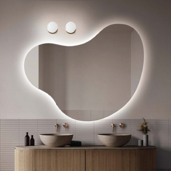 Este lindo espelho assimétrico retroiluminado graças ao seu design exclusivo de luz e delicada forma orgânica, trará um toque moderno e elegante à decoração da sua casa. Será, sem dúvida, um complemento ideal para adicionar brilho e uma sensação de amplitude à sua casa de banho.