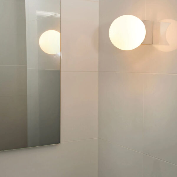 Aplique de parede para iluminação da casa de banho, em metal e difusor de vidro. GALA tem um design clássico e IP44.