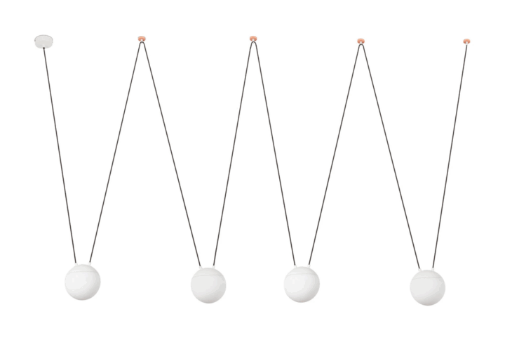 Pendente branco de cinco luzes desenhado por Nahtrang com estrutura metálica e difusor em policarbonato. O material e a luz que flui pelo difusor trazem calor e conforto à sua casa. Este pendente de design é versátil e personalizável, graças ao acessório gancho, pode colocar a luz onde precisar. Pelas suas possibilidades, é ideal para iluminar espaços contratuais, mas também para iluminar a casa.