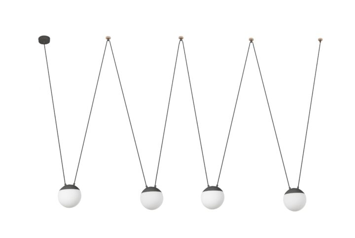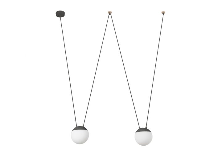 Pendente de três luzes cinzento escuro concebido por Nahtrang com estrutura metálica e difusor em policarbonato. O material e a luz que flui através do difusor trazem calor e conforto à sua casa. Este pendente de design é versátil e personalizável, graças ao acessório de gancho, pode colocar a luz onde precisar.
