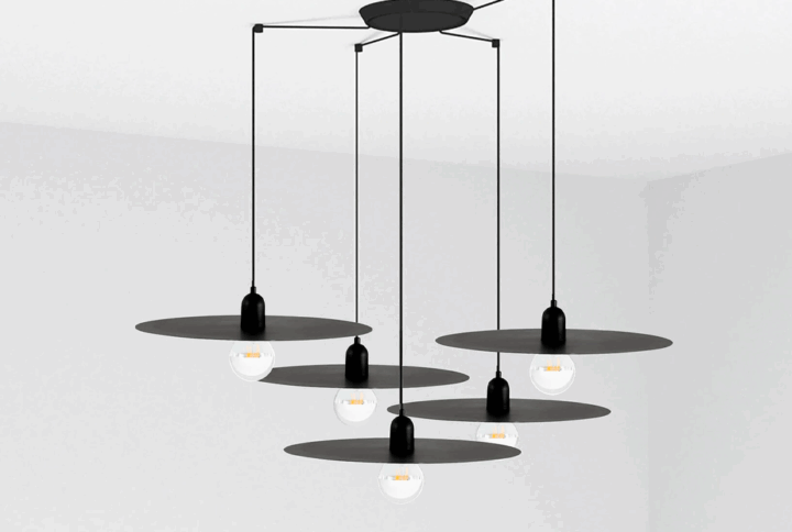 PLAT 7L é um candeeiro suspenso preto de estilo minimalista. O foco está na lâmpada, que é mostrada em todo o seu esplendor. Disponível em duas cores que combinam na perfeição com o estilo escandinavo. Versão com rosácea de teto múltipla de 7 luzes.