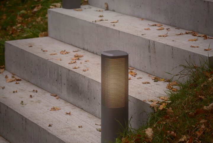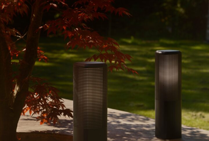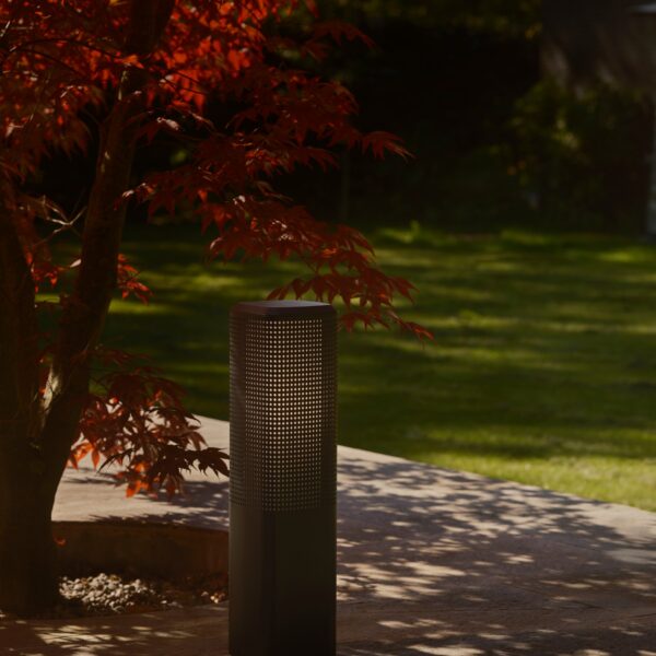 Projetada pelo renomado Jacob Jensen Design, esta luminária de jardim Sidara combina minimalismo moderno com uma expressão arquitetônica refinada. A superfície perfurada cria um belo jogo de luz e sombra em suas áreas externas. Fácil de instalar com a base inclusa.