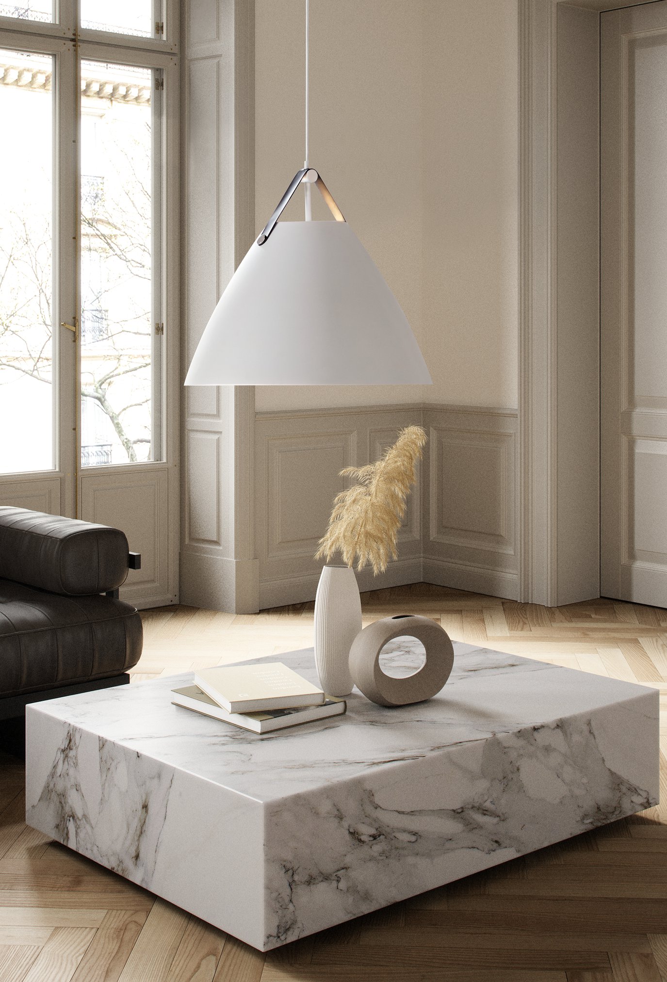 Tendo como objetivo criar um espaço onde o foco seja a iluminação, os candeeiros STRAP 68 e JOSEFINE conferem a imponência pretendida.